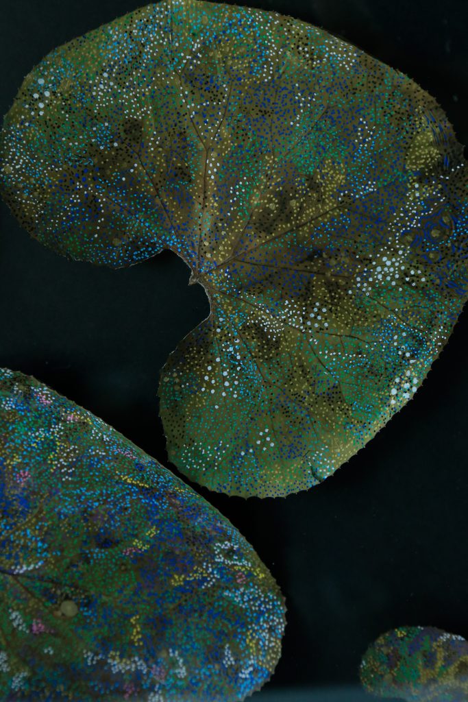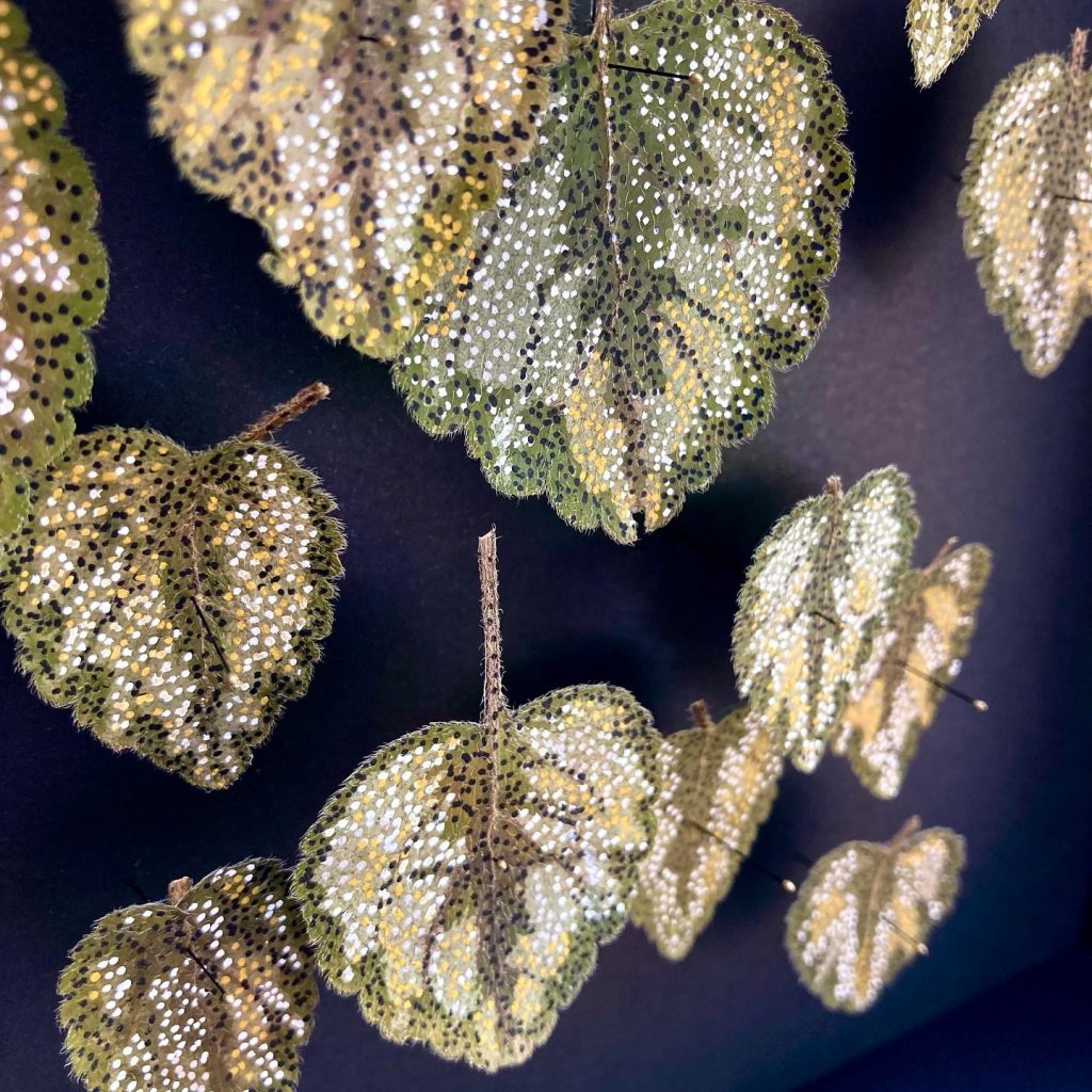 Les herbiers conservent la matière végétale mais les couleurs se modifient et disparaissent avec le temps… Avec le temps la matière végétale se révèle dans sa fragilité, ses transparences, ses nervures, sa structure. Cet état m’inspire par sa délicatesse. L’idée des herbiers impressionnistes est de recréer les sensations perceptives de la nature que notre œil nous fait voir sur des instants insaisissables de vie aux lumières particulières, un état d’émerveillement furtif.