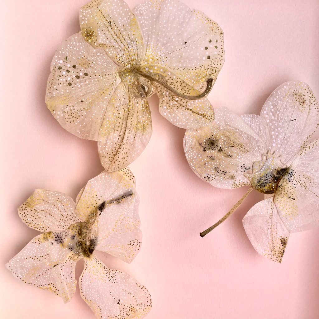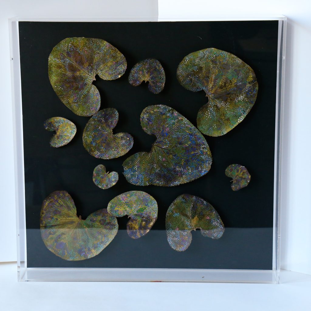 Pièces uniques issues de la série des Herbiers impressionnistes. Végétaux, peinture, métal, papier.©annbernachin
