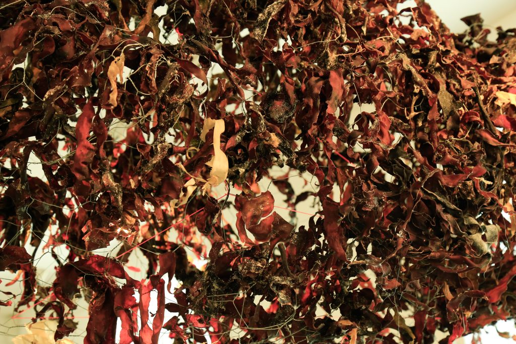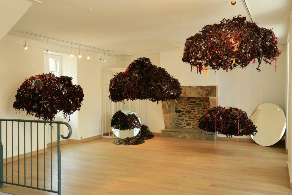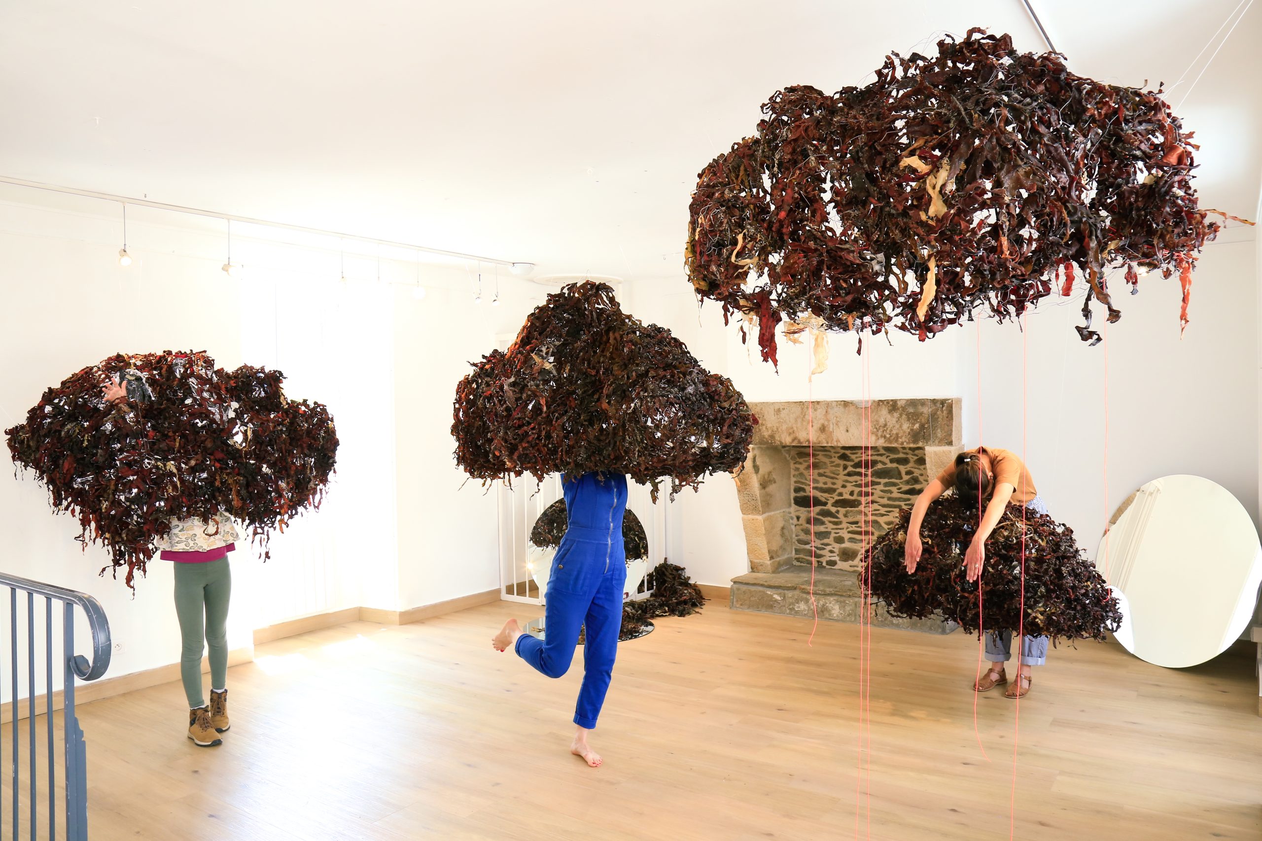 Il s’agit d’une installation de plusieurs sculptures réalisées avec des algues des laminaires rouges de la côte bretonne qui invitent le spectateur à se glisser à l’intérieur et à devenir corps-sculpture le temps d’un voyage intérieur.